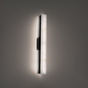 Streamlined and simple. An elegant bar of organic Spanish Alabaster is mounted on a rectangular plate. When lit, this slim sconce offers luxurious, softly diffused illumination.