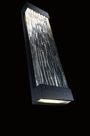Like diving down into the mysterious depths below the ocean surface. A dramatic art cast glass design emerges and is embraced by bold black hardware. This thoughtfully designed wall sconce is ideal for luxurious exteriors and interiors, kindled with beautiful illumination from above and below.