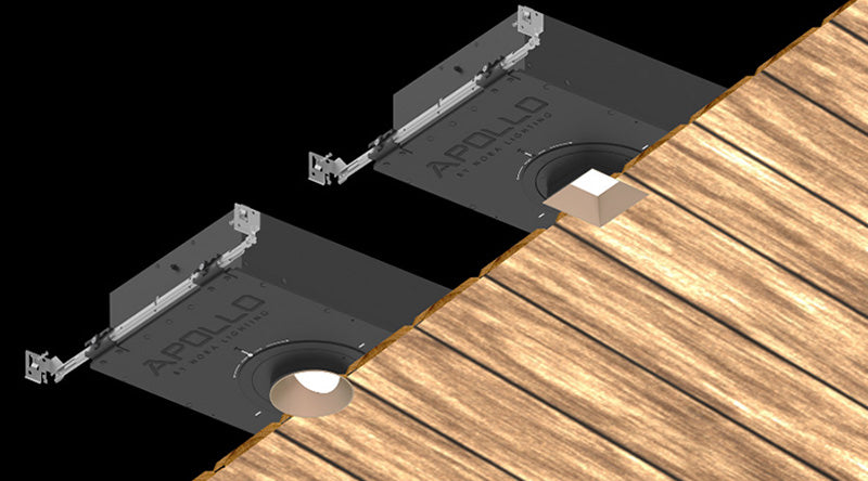3" Apollo IC Air-tight new construction housing for use with 3" Apollo flanged and flangeless trims. Shallow 4-1/8" housing includes the adjustable LED mechanism and reinforced bar hangers. A detachable roof allows for serviceability from below and above the ceiling.
