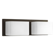Two-Light LED modern wall fixture with geometric frosted glass shades and a replaceable LED module.