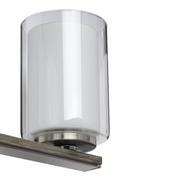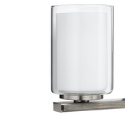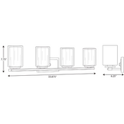 Create an environment of ease and relaxation in bath and vanity settings with the Mast four-light bath. A quartet of clear and etched glass shades create a votive candleholder appearance. A faux rectangular backplate paired with a straight bar, both accented by a Brushed Nickel finish, support the light fixtures in an airy, organic ensemble perfect for coastal and modern farmhouse settings.
