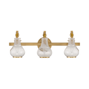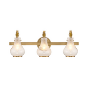 In the Adams 3-light bath vanity light, Savoy House took traditional lighting style and gave it a fashionable twist for today's stylish homes! Molded, curving shades of white strie glass offer an extra touch of eye-catching detail to go with the warm brass finish.