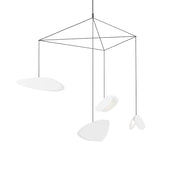 Delicately floating in suspension, these iconically modern, whimsical shapes bring the pathos of Modernism and the colors of Mondrian and Miró to the technology of today’s art of light. These light sculptures offer scale to modern primitive environments that playfully allow the activity of movement within its space.