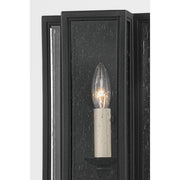 Modern yet classic, Leor features a unique step dimension on its sleek frame. The textured black finish, clear seeded glass, and cream candlestick combine seamlessly, creating an enduring design for any setting. Available in two sizes.