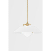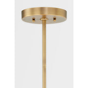 Playing with material and shape, Otto features a white linen shade with a glass diffuser in coordinating streamlined shapes. Patina Brass metalwork with unique details like finials directly on the diffuser and angled rods on the socket, add to the design's overall fresh, clean look.
