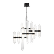 The Langston Medium Chandelier by AvroKO for Tech Lighting was carefully designed as a combination of elegant crystal forms from the past juxtaposed with an organic assembly inspired by in nature. The minimalist structural details put the focus onto the glass elements, which have a uniquely pointed shape and beautiful layered internal illumination. The solid brass armature is both simple and bold, rounding out an overall elegant confidence to the whole fixture. The individuality of this piece expresses its own distinct character offering decorative and warm comfort.