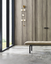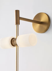 The Aged Brass ModernRail Wall light by Sean Lavin for Tech Lighting showcases the sophistication of ModernRail but with all of the simplicity of an elegant wall sconce. This Aged Brass ModernRail Wall features optional frosted opal glass globes or cylinders that gracefully wrap around the center rail allowing light to illuminate generously into surrounding spaces.