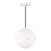 Inspired by mid-century design, the Hanea Grande Pendant by Sean Lavin for Tech Lighting celebrates the popularity of spherical geometry with an acrylic shade accented by a thin band.