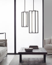 Celebrating the influence of geometry by linking thin rectangular frames, the Kenway 25 Pendant by Sean Lavin for Tech Lighting is designed with strips of inward-facing LED light guide strips providing generous amounts of illumination in the surrounding area.