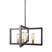 Inspired by classic lanterns, the clean, geometric silhouette of the transitional Finnegan chandelier collection by Feiss features exquisite metal work and marries two new, contrasting finishes. The square tubing of the open frame in a New World Bronze finish is in dramatic contrast to the new Burnished Brass finish of the socket cups, which brighten and bring life to this mixed-material collection. This design will perfectly complement a wide range of décor from urban, eclectic loft spaces to clean, contemporary interpretations of Colonial or nautical décor to rich, European inspired space.