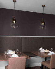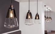 Each light fixture in the modern Waveform pendant light collection by Feiss is an elegantly simple, conical blown glass pendant with a closed bottom. Vacuum-plated metal detailing adds a rich, contemporary design element around the crown of each fixture to help conceal the light source.