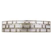 You've been framed. A superhero of sparkle and strength, Harlowe lightly twists Mid Century Modern and Streamline Moderne design. Its ribbed recycled glass has texture pressed into the backside to create its sparkly effect. Its recycled steel framework presents a subtle repeated H pattern. Harlowe delivers bling to today's discerning decors.